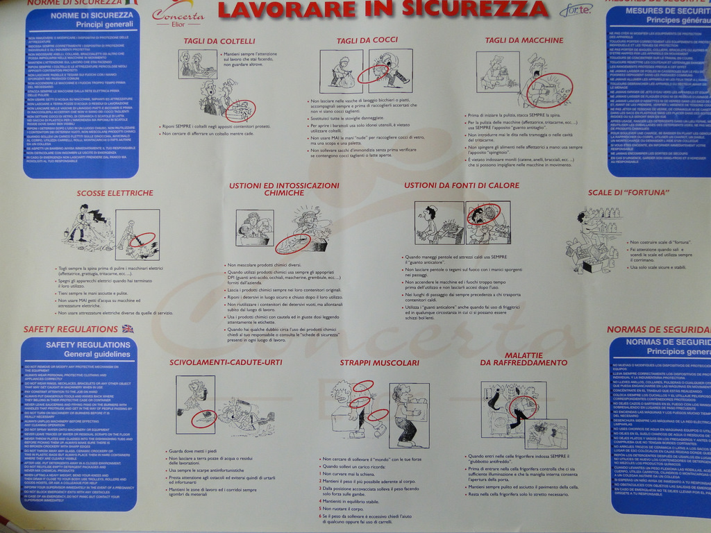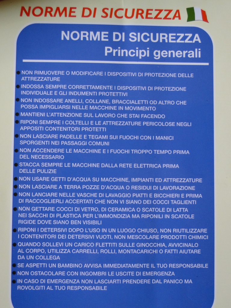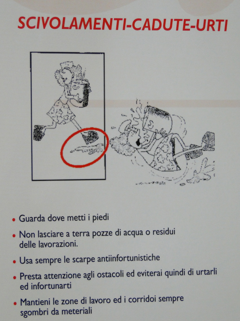 cartelloni sono due: uno con le regole per la sicurezza sul lavoro e la prevenzione degli infortuni, l’altro con